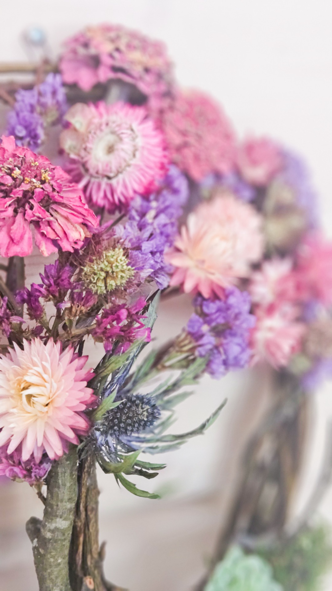 Kuivakukkakranssi 30cm "Elämänpuu". Nouto Kukkapirtiltä.